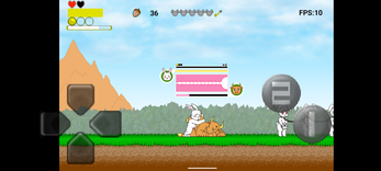 Naughty Rabbit (Android Port) is a 2D side-scrolling platformer action game with the player as a male anthromorphic rabbit and the goal of rescuing the female rabbit captives in each stage. In the current demo, there are three stages with the third stage being a boss stage against a wolf lady. The player can collects the acorns in each stage and use them in the store to buy items such as carrots (restores health) and a mandrake that will restore all hearts if the player loses them all during a stage. After defeating an enemy capable of sex, the player can interact with them by standing next to and pressing button 3 (C key). The sex scenes are animated and involves timing with the goal of either the enemy orgasms first or both partners orgasm together. If the enemy is not satisfied enough, the player will lose a 1/4 part of heart. The game can be played with either a gamepad or keyboard.